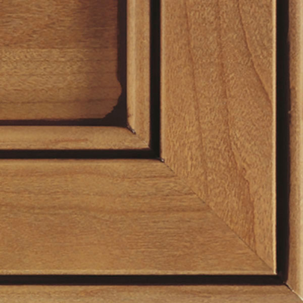 Tuscan Mocha Glaze cabinet finish is a light brown stain on Cherry with a slight warm golden glow, topped with a dark reddish brown glaze.